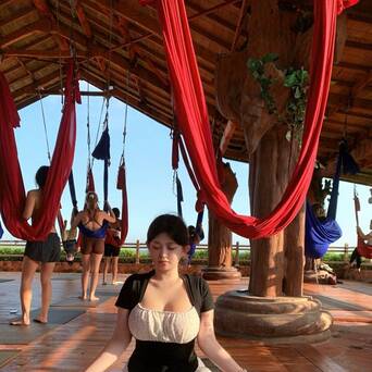美女妆容清淡,眉眼灵动,长期的瑜伽训练让她身材更加的柔美,简直是纯欲天花板!